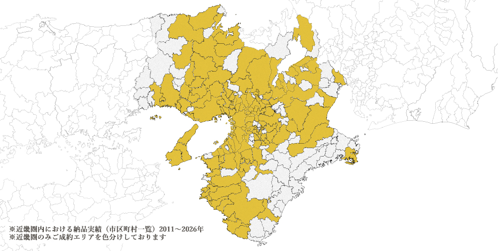 近畿圏内における納品実績